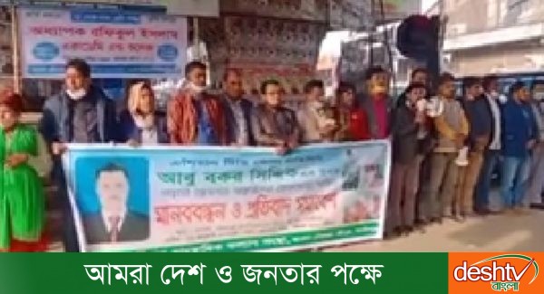 গাজীপুরে এশিয়ান টিভির সাংবাদিক আবু বকর সিদ্দিকের উপর সন্ত্রাসী হামলার প্রতিবাদে মানববন্ধন অনুষ্ঠিত।