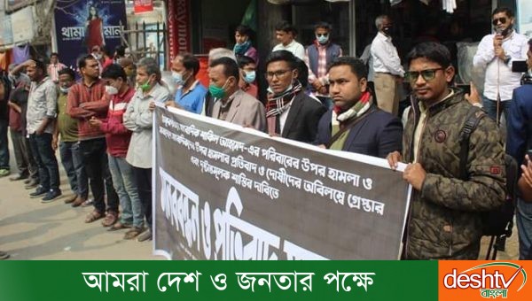 ঠাকুরগাঁওয়ে সাংবাদিক শাকিল আহমেদের পরিবারের উপর সন্ত্রাসী হামলার প্রতিবাদে মানববন্ধন