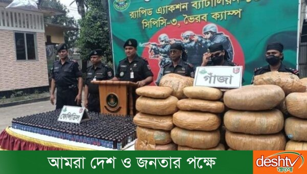 ভৈরবে র্যাবের অভিযানে বিপুল পরিমাণ গাঁজা ফেন্সিডিল সহ দুই মাদক সম্রাট গ্রেফতার। দেশ টিভি বাংলা