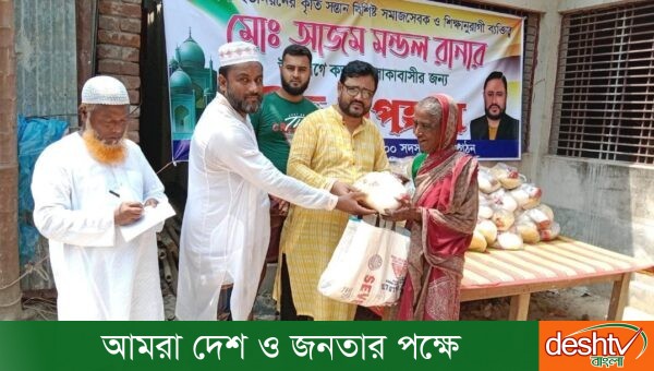 ফুলবাড়িতে সমাজসেবক আজম মন্ডল রানার অসহায় মানুষদের মাঝে ঈদ উপহার বিতরণ।