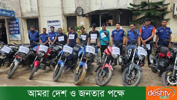 গাজীপুরের শ্রীপুরে ১০ টি মোটরসাইকেল উদ্ধার সহ গ্রেফতার ৫ চোর