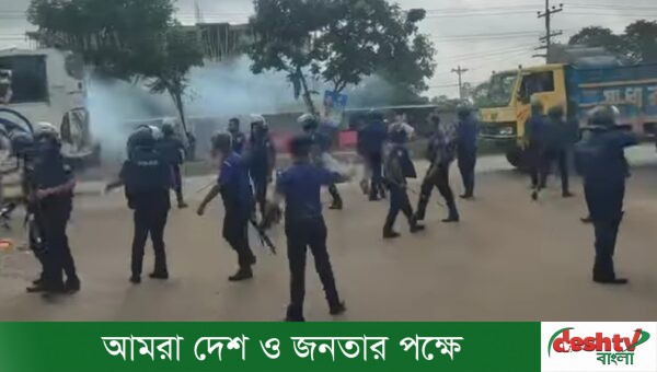 শ্রীপুরে মহাসড়ক অবরোধ, পুলিশের সাউন্ড গ্রেনেড নিক্ষেপ